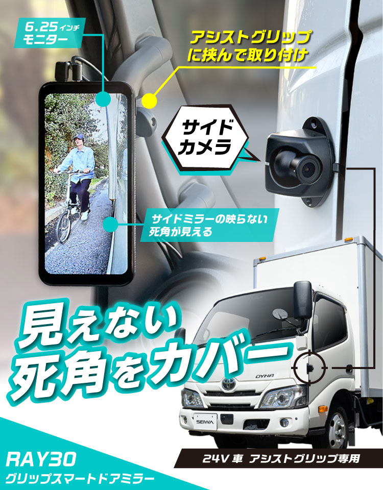 グリップスマートドアミラーなら、サイドミラーに映らない死角を見逃さず、安全運転をサポートします。